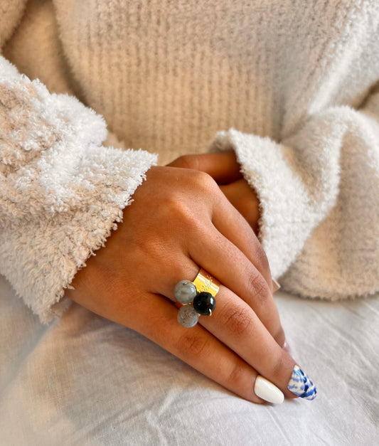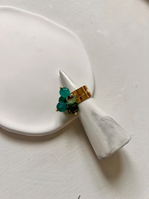Anillo en oro laminado & piedras Ágata azul (one size)