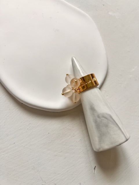 Anillo en oro laminado & cristal "frosted" transparente mate (one size)