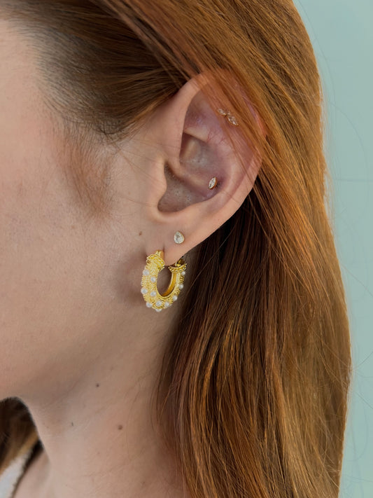 Anillo en acero inoxidable dorado con puntas en cristal estilo resorte (one size)