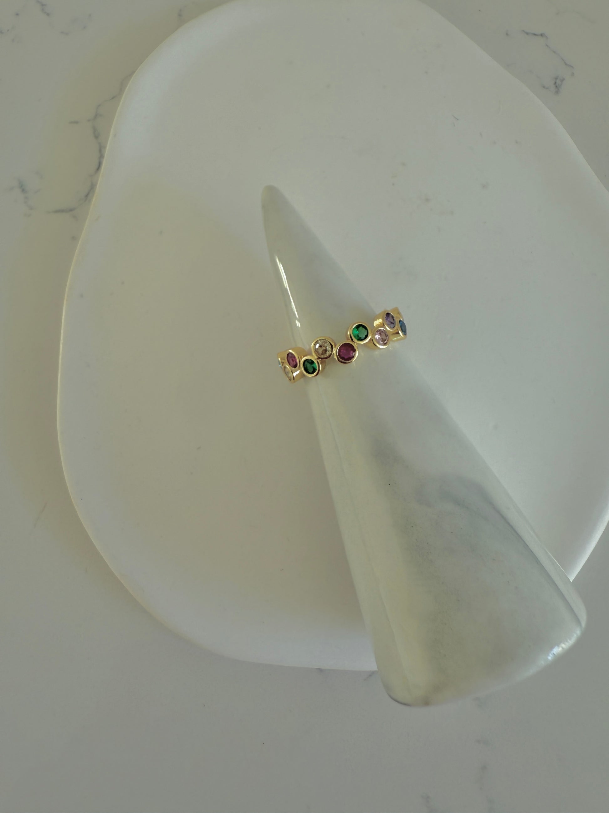 Anillo en acero inoxidable círculos multicolores con base dorada (one size)