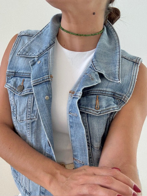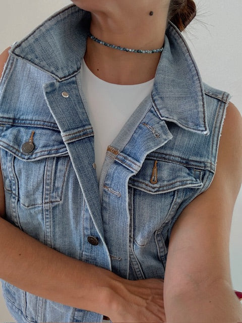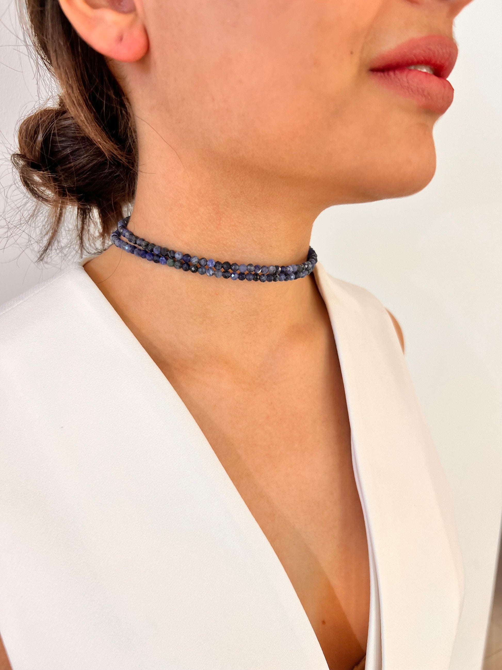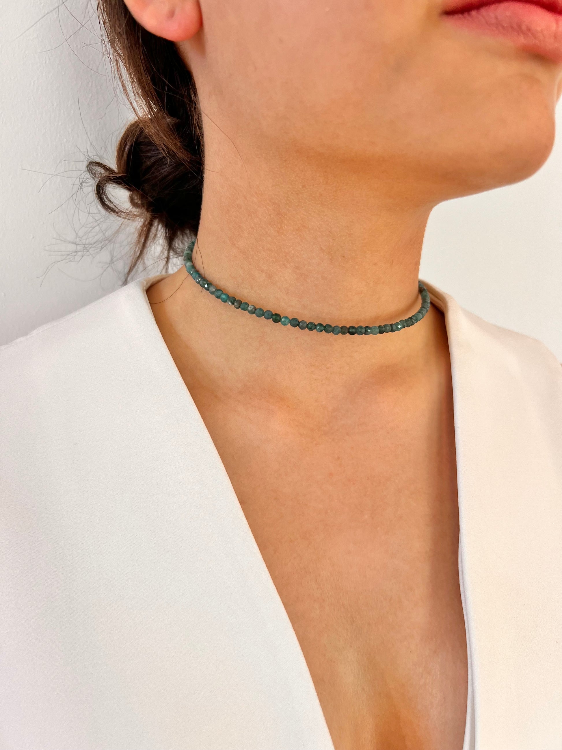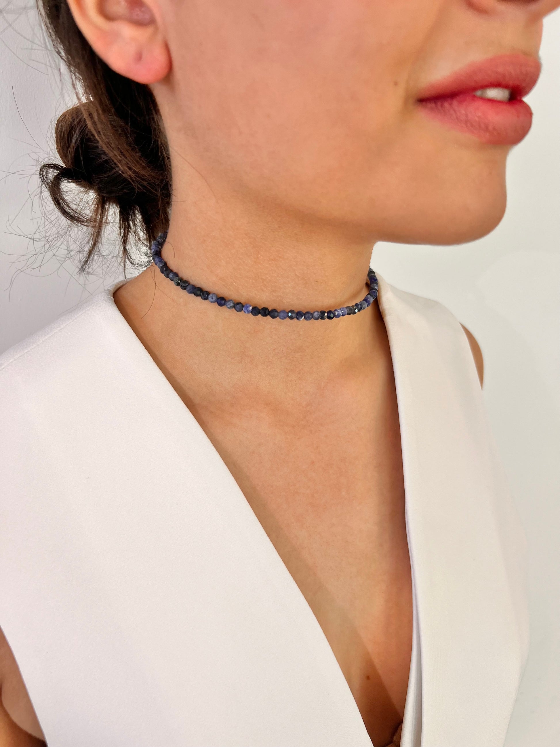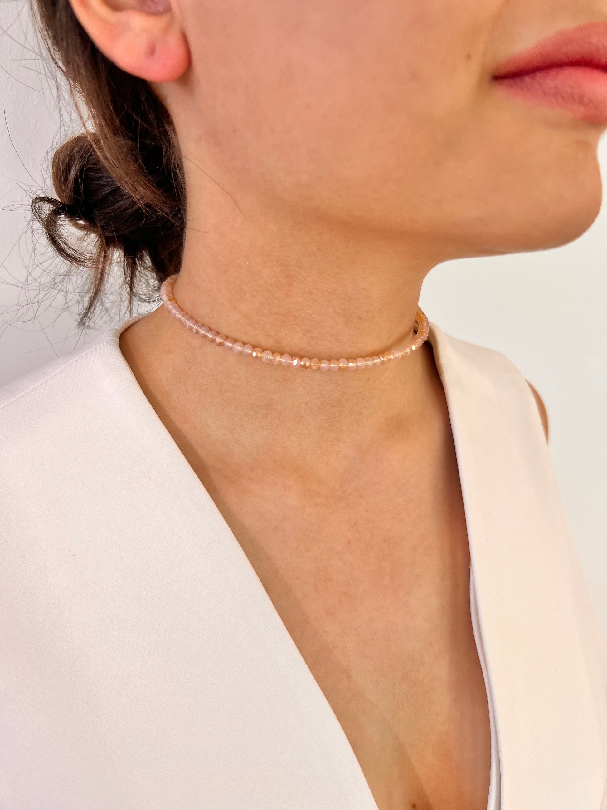 Gargantilla elaborada a mano por diseñadora, es creada con mini beads de piedras semi preciosas o cristal.